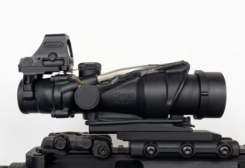 כוונת 508T של Holosun עם מתאם של Trijicon לכוונת ACOG. ה-508T היא כוונת Heavy Duty עם זכוכית מלבנית וחזקה יותר והגוף של הכוונת עשוי טיטניום, שילוב מושלם על כוונת ACOG.